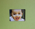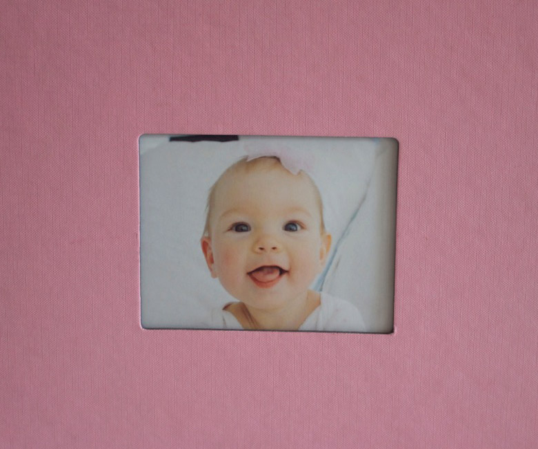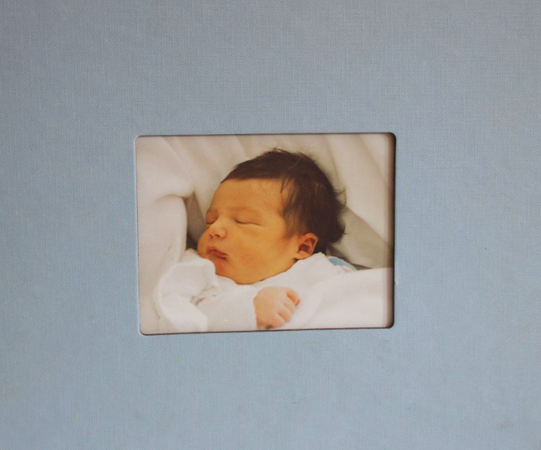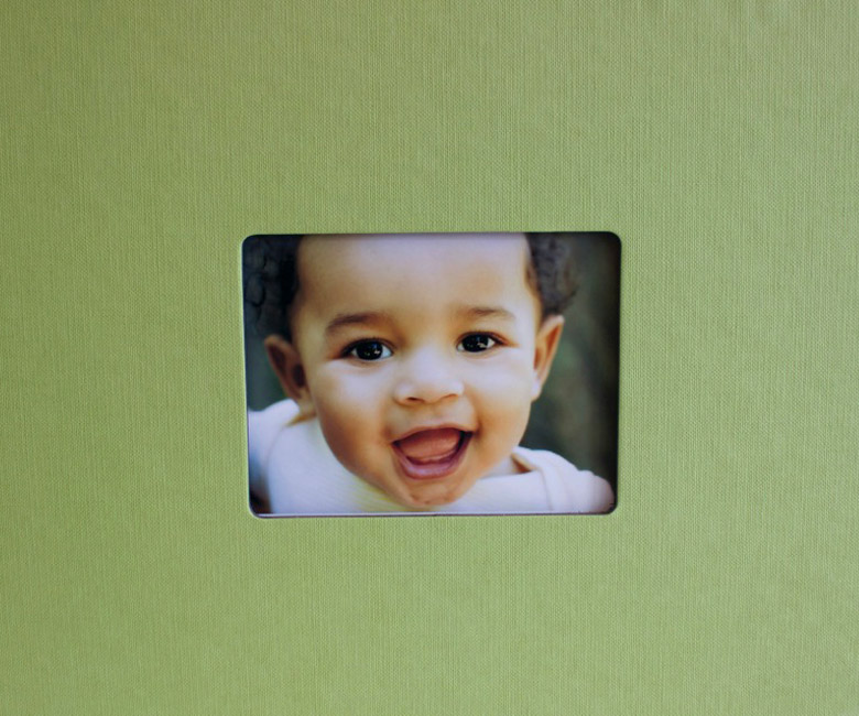 Dimensions: 8.5in. high x 11in. wide with a cutout frame in the center that is 3in. high x 4in. wide. All of our books are professionally printed and bound in custom-made linen embossed covers.