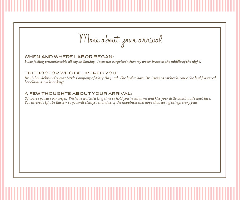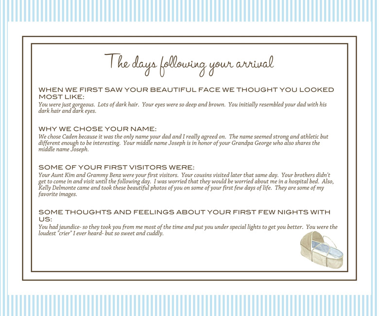 Details unique to your baby and family, with optional and custom pages too!