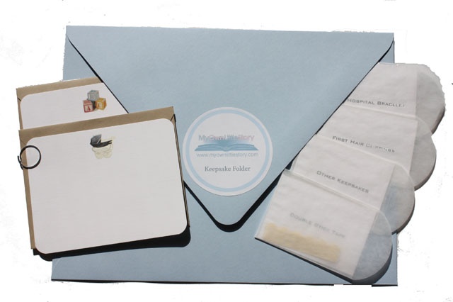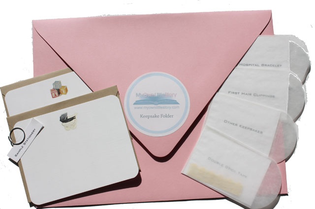 All of our gift vouchers come with a complimentary "Keepsake Folder" (pictured on the left) perfect for storing ultra-sound photos, birth announcements or shower invitations.  In addition, we have included and labeled vellum envelopes for enclosing your child's hospital bracelet and first hair clippings- complete with double stick tape for securing your treasures in a printed book. Finally, we couldn't resist sharing two of our most popular stationery designs- they make a perfect thank-you note or gift enclosure.  Be sure to enter the coupon code: GIFT to receive $6 dollars credit on your shipping!